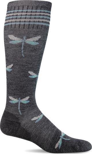 Step into ultimate comfort with patterned socks featuring compression technology that promotes circulation, minimizes swelling and reduces fatigue. A soft and stretchy merino-wool blend and an ultralight cushion sole provides superior support that makes them great for prolonged sitting or standing, flying, travel and exercise.