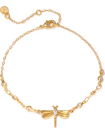 Add a kiss of nature-inspired whimsy to your stack with this dragonfly bracelet plated in warm 18-karat gold.