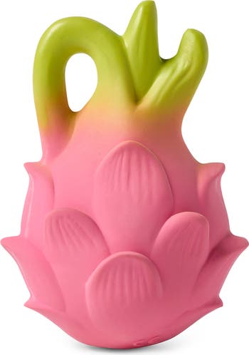 This handcrafted teether is made from natural Hevea-tree rubber with hand-painted details and no holes (so no mold can grow inside.)