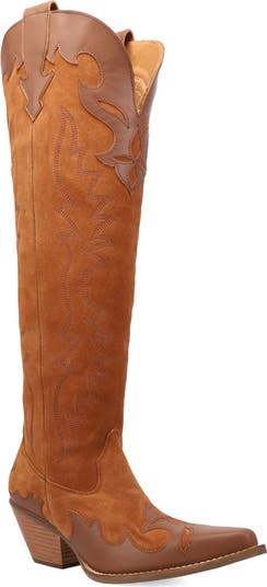 Before you leave the house, dial up the drama with this Western-style leather boot done in a showstopping over-the-knee silhouette.