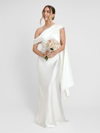 A one-shoulder moment designed to turn heads with the dramatic neck drape detail. This Chartreuse satin dress is all about understated drama, elegantly draped, cinched at the waist, and cut to flatter from every angle with its sculptural neckline and luxe sheen.