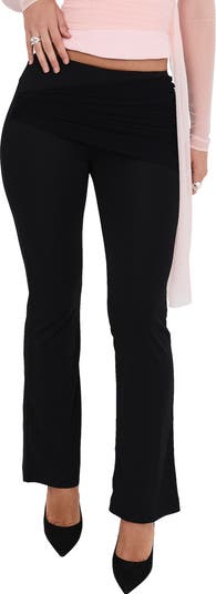 A ruched panel details the top of these slim-fit pants finished with flared legs.