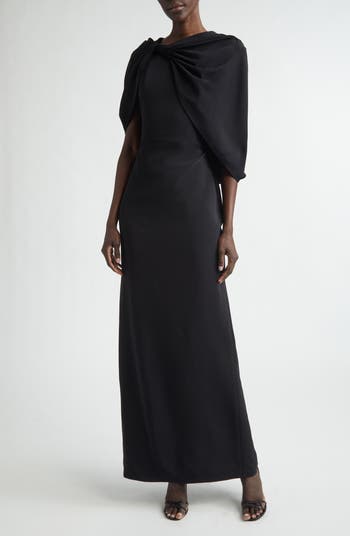 Drape Sleeve Stretch Cady Column Gown