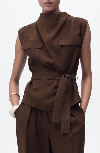 A drapey tie belt shapes the silhouette of this lightweight sleeveless top made with a gathered-and-draped neckline for texture and volume.