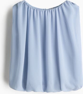 Sleeveless top in airy chiffon featuring a round neckline with a keyhole opening and button at the back. Gathers around the neckline and on the shoulders, and a bubble hem that creates a puffy, draped silhouette. Lined.