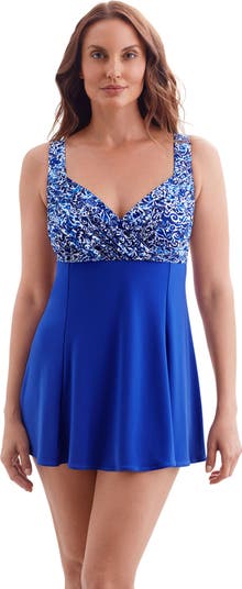 This classic, tummy-slimming swim dress features a crossover design with draped detailing for infinitely effortless elegance. This flattering silhouette brings the best of both worlds: casual yet chic.
