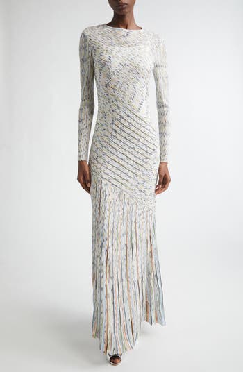 Missoni proves once again why it's the master of knitwear with this draped-effect maxi dress made from a dimensional ribbed fabric that accentuates your body's lines, defining the silhouette with sculptural elegance. The slubbed yarn is woven with a hint of metallic threads for refined luminosity,
