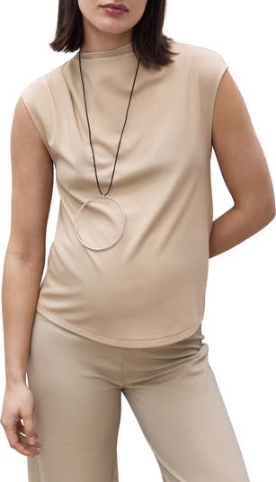 Elevate everyday ensembles or night-out looks with this sleeveless T-shirt that's pleated at one shoulder to create a chic, draped effect.