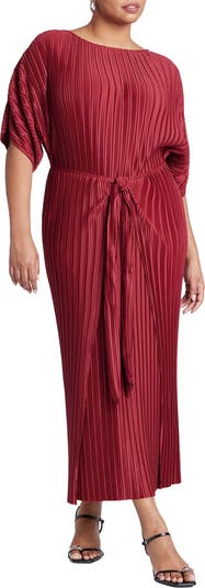 A plisse-knit maxi with dolman sleeves and wrap-over waist ties.
