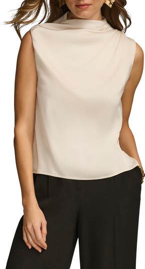Add a lilt of luster with a gracefully draped top cut from matte satin.