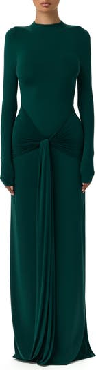 Draped Tie Turtleneck Long Sleeve Maxi Dress