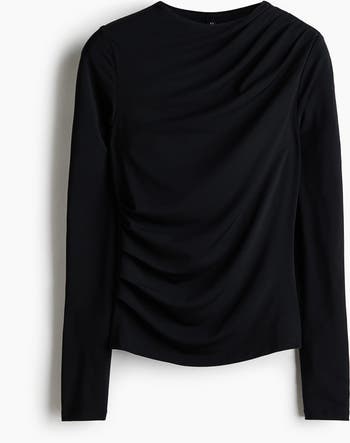 Fitted, long-sleeved top in soft jersey with a turtle neck and pleats on one shoulder and at the opposite side of the waist to create a draped effect.