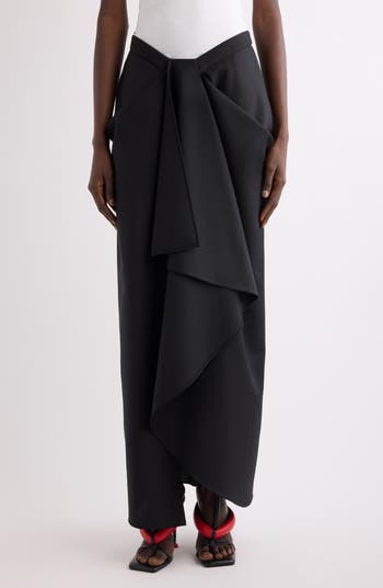 Inspired by the act of draping a jacket over a mannequin, panels of woolly, mohair-rich suiting fabric are artfully arranged in a sculptural cascade of ruffles on this asymmetric column skirt.
