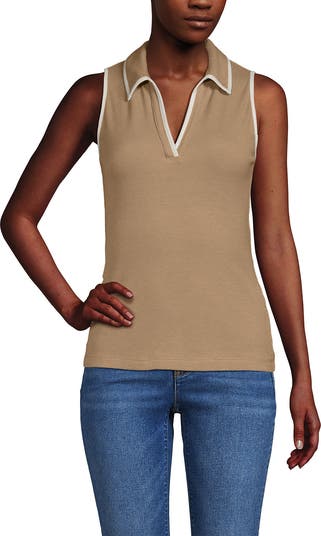 Drapey Rib Sleeveless Johnny Collar Polo Shirt