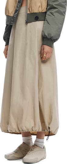 A gathered drawcord hem shapes the silhouette of this maxi skirt cut from crisp cotton.