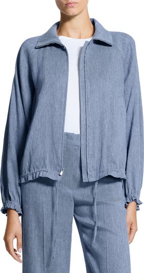A drawstring at the hem brings some wear-it-your-way charm to this linen-blend jacket cut with a sporty stand collar.