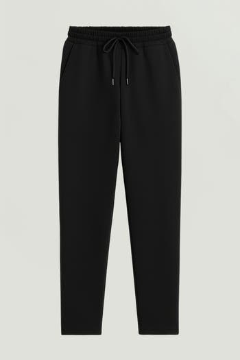 Crafted from a smooth, mid-weight fabric, these jogger-style pants offer the perfect balance of comfort and sleek minimalism. Designed with a relaxed straight-leg silhouette, they feature an elasticated waistband with an adjustable drawstring for a secure and customizable fit. Slant side pockets add everyday practicality, while the clean welt pockets at the back keep the look polished. The ankle-length hem creates a modern, streamlined finish that works effortlessly for both casual and elevated off-duty styling. Ideal for travel, weekend wear, or pairing with structured tops for a chic athleisure look.