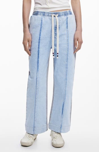 Deeply faded jeans get extra comfy with a drawstring waist and a supersoft fabrication.