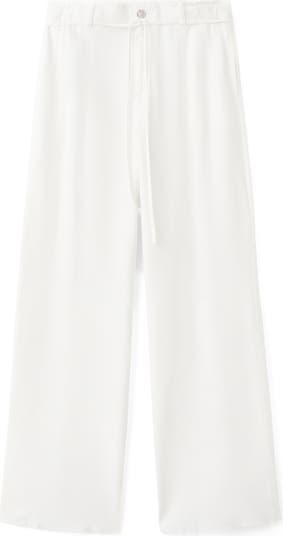 A breezy linen-kissed blend lends warm-weather charm to straight-leg pants topped with drawstring ties.