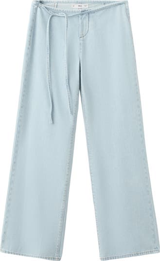 MANGO TEEN Drawstring Wide Leg Jeans, Main, color, Bleach Blue