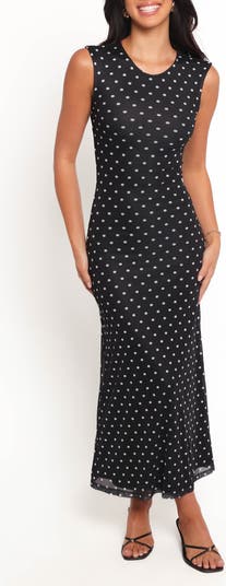 Sweeten the occasion in this gauzy figure-skimming maxi designed in an allover print and punctuated with a perfectly draped hem.