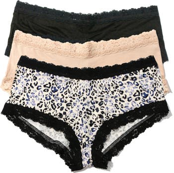 Soft, stretchy lace outlines these stretchy boyshorts cut from breathable stretch-knit fabric for a comfortable, stay-put fit.