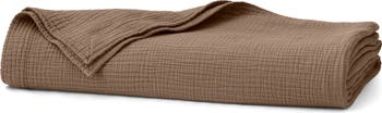 Slumber in total softness with this cozy, texture-rich blanket made from four layers of preshrunk, breathable organic cotton layered into your bedding ensemble.