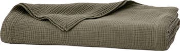 Slumber in total softness with this cozy, texture-rich blanket made from four layers of preshrunk, breathable organic cotton layered into your bedding ensemble.