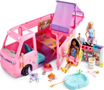 Adventure awaits with the camper playset, featuring seven play areas and more than 60 accessories to play out adventures in the great outdoors.