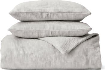 The label's signature organic cotton undergoes a preshruken process that brings amazing softness and depth of color to this set that drapes your bed in casual comfort.