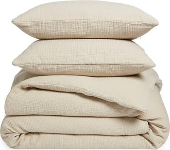 The label's signature organic cotton undergoes a preshruken process that brings amazing softness and depth of color to this set that drapes your bed in casual comfort.