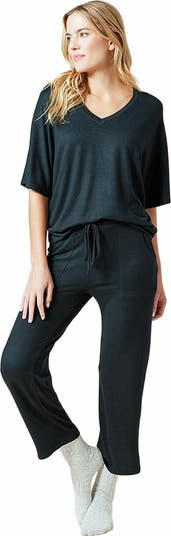 Unleash your inner queen by lounging in the captivating comfort of Softies Dream V-neck Capri 2-piece set. This opulent loungewear set elevates your lounging routine with an unconstrained wide-leg cropped pant and v-neck top in buttery soft jersey fabric, enveloping you in an unmatched allure of luxury and sophistication. The ensemble boasts of a chic yet effortless silhouette that flatters every body type, while its two side pockets and elastic waistband ensure maximum convenience and comfort. Slip into this dreamy outfit after a long work day, or embrace the ultimate lounge experience on lazy weekends – the Softies Dream V-neck Capri 2-piece matching set is the perfect combination of elegance and relaxation.
