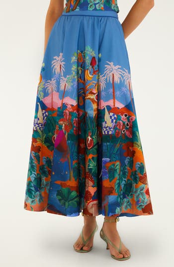 A carnival of colors contributes to the celebration of Brazil's rich flora patterning this maxi skirt cut in a full, flared silhouette from a crisp, breathable organic-cotton weave.