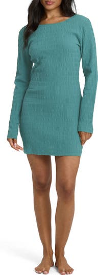 Smocked cotton in a seaworthy blue hue defines a long-sleeve minidress with a scoop back.