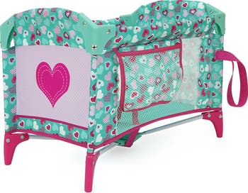 MINT HEART: DOLL PLAY YARD - DREAM N' FUN - Give your dolls the perfect place to relax, play, or nap with the Mint Heart Dream N' Fun Doll Play Yard—a cozy, practical, and adorable addition to any imaginative play routine. Thoughtfully designed with little caregivers in mind, this charming play yard offers a realistic space for dolls to rest after a busy day of play and care. Adorned in a sweet Mint Heart pattern, the play yard adds a cheerful and stylish touch to any pretend nursery or play area. It’s just the right size for your favorite dolls or plush companions, creating a special spot where they can lie down, play quietly, or drift off into dreamland during pretend naptime. Convenient side pockets make it easy to keep all your doll’s essentials—like bottles, toys, pacifiers, and extra clothes—organized and close by. Whether it’s playtime at home or a pretend sleepover at grandma’s house, everything your doll needs can be tucked in neatly for easy access. Crafted from lightweight yet sturdy materials, the play yard is built for both fun and function. When playtime is over, it folds down quickly and compactly—perfect for storing in small spaces or taking along on the go. Its durable design ensures long-lasting enjoyment through imaginative and nurturing play. *NOTE: Doll not included.