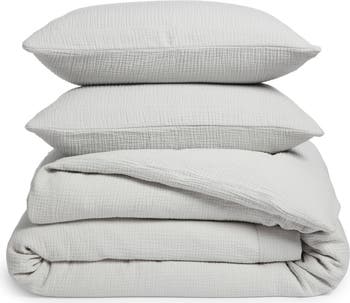 The label's signature organic cotton undergoes a preshruken process that brings amazing softness and depth of color to this set that drapes your bed in casual comfort.