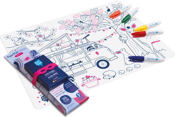 The ultimate in portable crafting, this dreamy vanlife scene is printed on a reusable silicone coloring mat your little artist can decorate again and again.