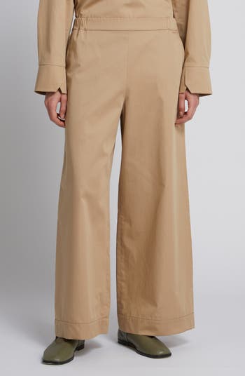A back elastic waist adds comfort to these polished pants cut from crisp cotton and finished with drapey wide legs.