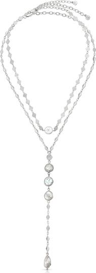 Two genuine pearl silhouettes mix and mingle with crystal pavé discs in a sweetly striking necklace that's a one-and-done layered look.