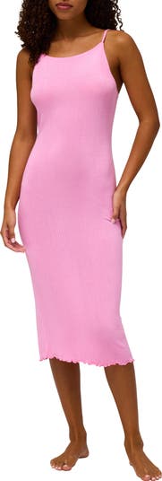 Soft allover ribbing textures and shapes this comfy nighttime slipdress that'll sweeten all of your dreams.