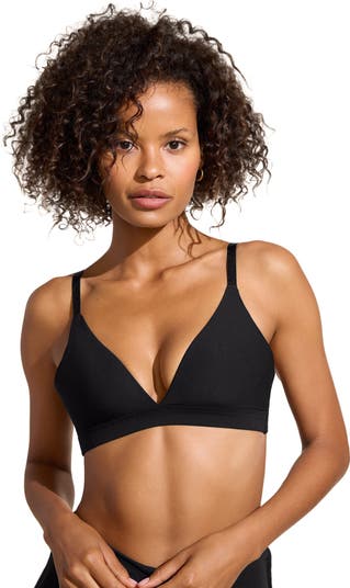 Our best-selling bikini top for a reason. The v-neckline gives you the boosted chest you want without an underwire or bulky pad. Cut in our signature luxury compression fabric that is sculpting, smoothing, and cooling to the touch, your chest will look full and sexy, but supported enough to be active at the pool or beach.\n|Gorgeous gold back clasp\n|Lined with removable cups\n|J-hook to convert to racerback\n|Bottom band for soft, supportive comfort\n|UPF 50+