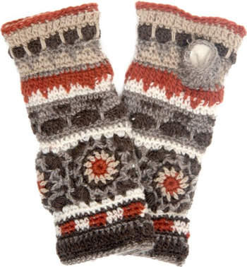 The Dreams Crochet Handwarmers are made of 100% wool and are fully lined with fleece. They feature multiple knit patterns in different color combinations. Handmade in Nepal.