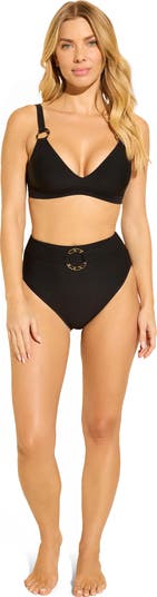 Our shapewear-designed bottom sculpts you in all the right places, but delivers a completely smooth silhouette (i.e. no rollover anywhere). A high-waisted cut hits at the narrowest part of your waist and provides the perfect amount of support for all-day wear. The chain ring belt makes this bottom not only incredibly flattering on every body type, but a timeless fashion statement.