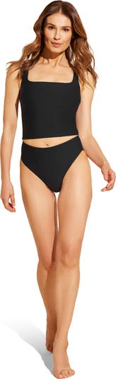 This essential top is cut in our luxury French compression fabric that sculpts and smooths the body. We designed it to be versatile and pair with leggings, jeans, or a bikini bottom. The built-in shelf bra offers an all-in-one body solution. A chic square neckline and wide straps are universally flattering and highlight a supported bust.