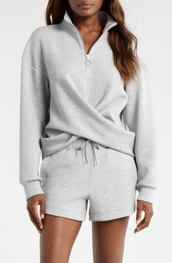 Cut from a luxuriously soft knit and draped with a gathered crossover front, this quarter-zip top is your reward for going all in on that workout.
