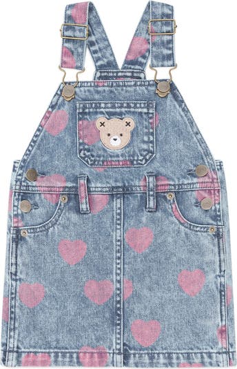 The kind of piece that gets worn to bits. This versatile pinafore dress is made from deliciously soft cotton in our dreamy denim. It features adjustable straps, deep pockets, our custom heart print, and a full skirt for easy wear.