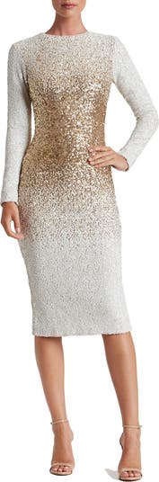 Snow-white sequins diffused with metallic shine create ombré dimension on this glistening body-con dress