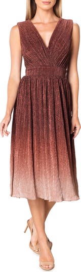 A shimmery, on-trend ombré design covers this party-ready cocktail dress made from a crinkly textured fabric that only adds to the glam.