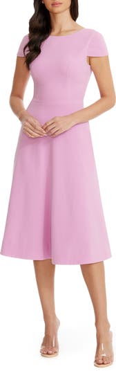 The signature drape of sleek crepe fabric is the raison d'être of this elegant fit-and-flare dress with always-welcome pockets.