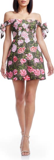 Meris Floral Embroidered Off the Shoulder Minidress